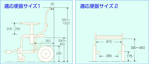 型番:No.5820 ●サイズ/幅51×奥行84×高さ94〜100(4段階調節)cm 座寸法:幅41×奥行38×高さ45〜51cm ●重量/13.5kg ●材質/本体:ステンレスSUS304 背もたれ:ナイロン 座:EVA樹脂 ステップ:ポリプロピレン ●車輪:前輪 キャスターW ステンレスダブルロック キャスター12.5cm 後輪 ノーパンクタイヤ12インチ ●適応便器サイズ:高さ45×41cm以下 ・スライドグリップ付。