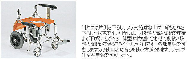 ・背もたれ稼動、跳ね上げステップ、高さ調節可能等多機能です。